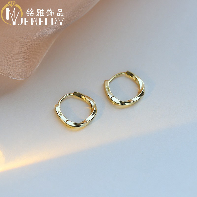 S925 Sterling Silver Earrings Mobius Ear Buckle Female Niche Design Simple All-match Plain Ring High-end Ear Ring Tide